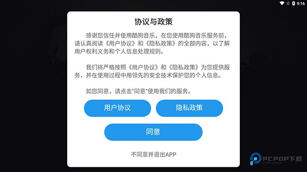 1、下载安装本站提供的酷狗音乐车机版2025最新版,进入软件后需要同意用户协议;