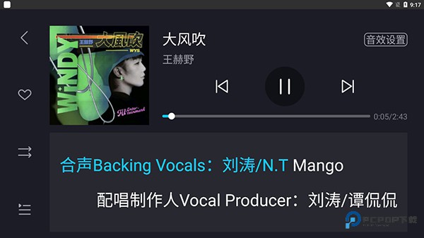 5、在播放界面能够看到歌词,支持暂停和切换歌曲,还能设置音效。