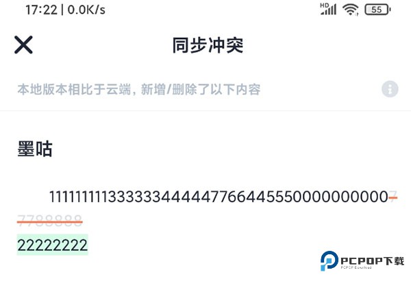 点开查看详情,按颜色提示进行查对,最终选择内容无误的本地版本或云端版本进行保留。