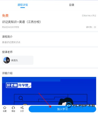 3、进入课程界面后,点击右下角的“加入学习”即可开始学习。