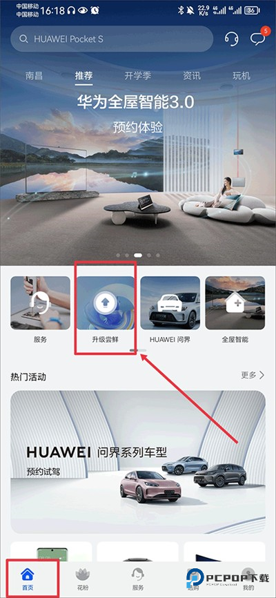 1、打开,在首页中点击升级尝鲜;