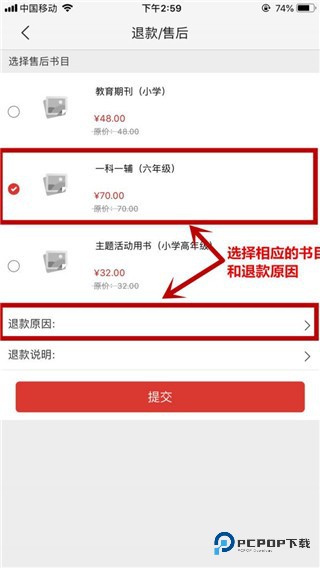 4、最后选择好要退的书和退款原因进行提交就可以了。