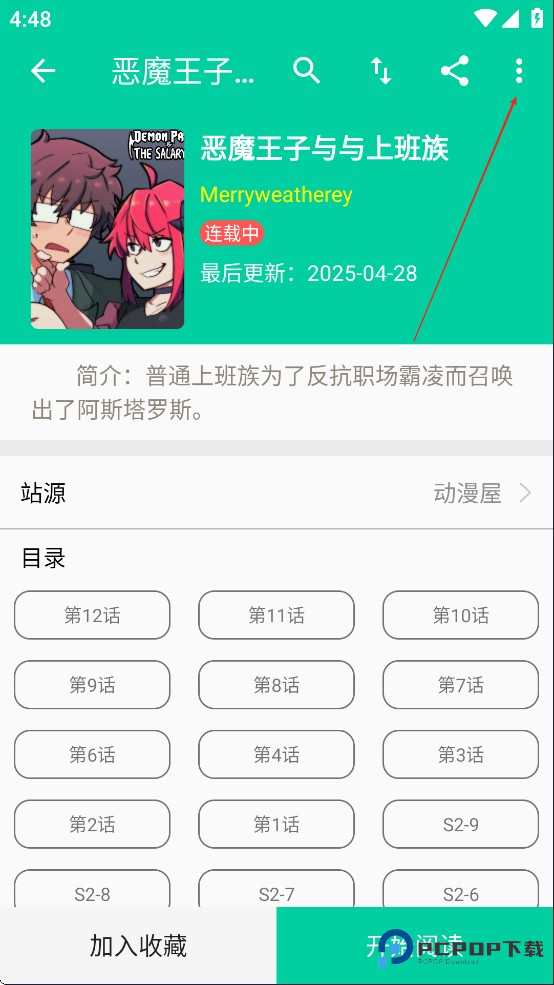 打开软件找到自己喜欢的漫画,然后点击右上角符号
