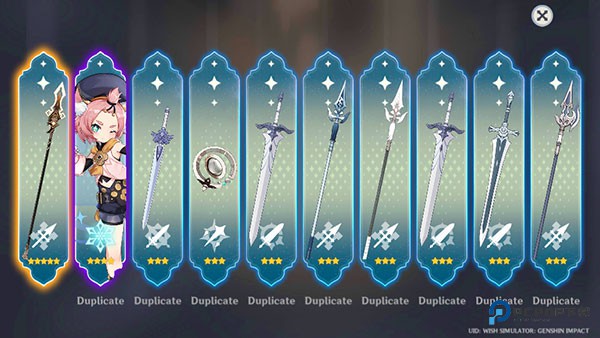 6、这里就是你所抽取到的全部卡片了,快来试试你的手气吧,以上就是原神愿望模拟器中文版的玩法了。