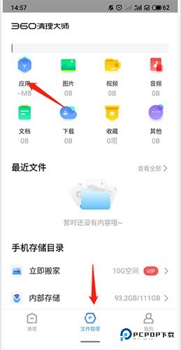 1、点击清理大师的文件管理界面,呈现应用、图片等文件分类,可查看手机存储目录情况。
