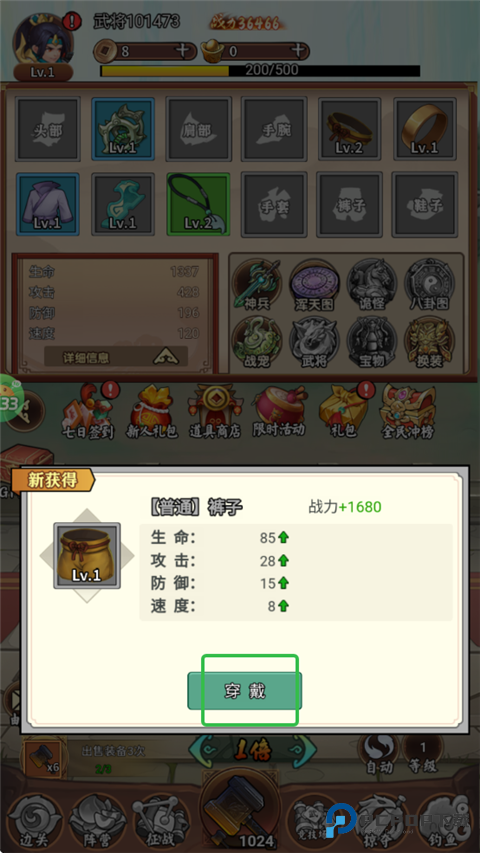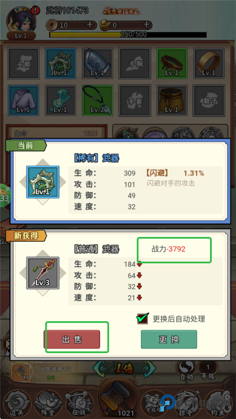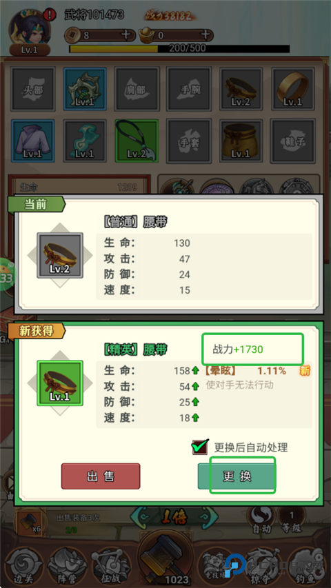 3、刷出更高阶装备,战力可提升,点击更换。
