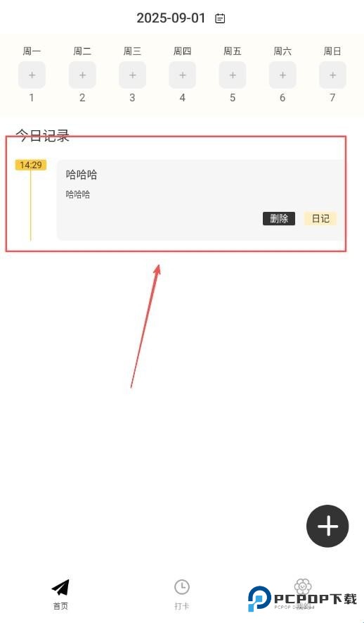 4、点击保存按钮完成日记编辑后,返回到软件的首页界面,在首页的日记列表中就能查看刚保存好的日记。