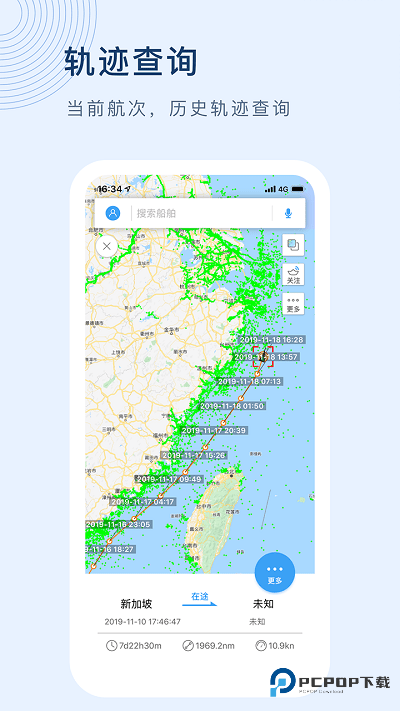 2、历史轨迹:用户可选择时间段回放船舶历史航行轨迹,重现船舶历史航行过程。