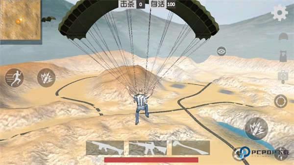 1、游戏是大逃杀类型的游戏,每一局游戏将有100名玩家参与,他们将被投放在绝地岛的上空,游戏开始跳伞时所有人都一无所有;