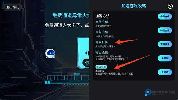 5、发现免费渠道人太多,可以通过做任务或邀请好友方式来获得免费时长和免排队福利