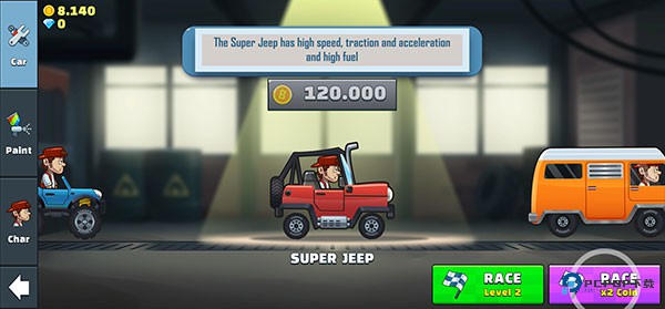 5、在前进的途中,会拥有大量的金币,你可以用金币购买更好的车辆;