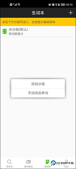 3、除此之外,用户还可以将生词本进行添加分组,方便以后需要的时候快速查询。