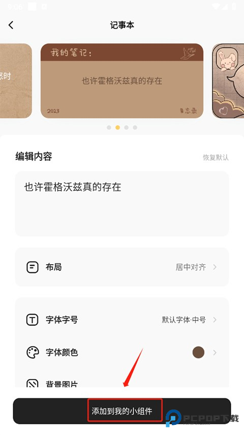 2、然后编辑内容,布局、字号等后,点击添加到我的小组件即可