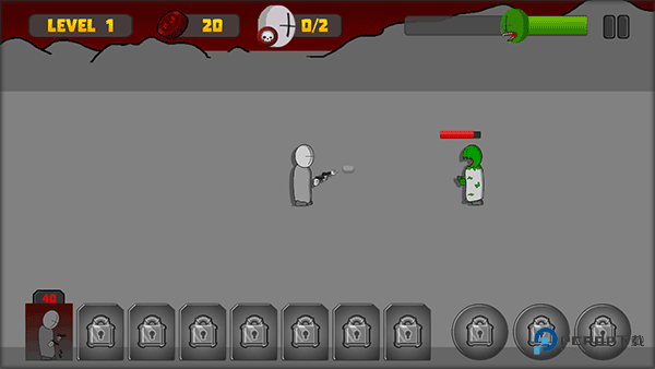 3、玩法跟植物大战僵尸一样,你需要阻止这些僵尸的入侵,依次在僵尸入侵的路上,放置人物。