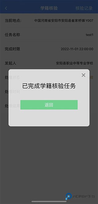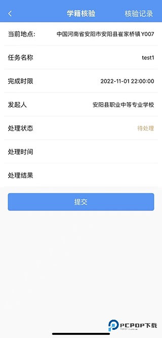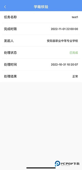 6、如果是在校核验的话,处理结果会是正常,否则显示异常或其他内容。