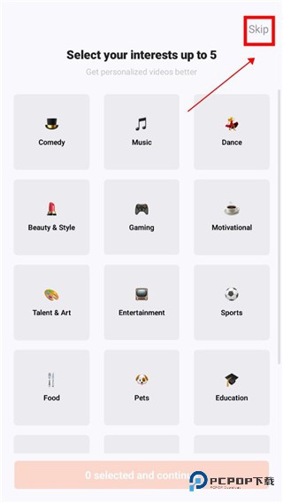 1、首先下载kwai快手海外版,点击进入,一开始是喜好设置,随意选择即可,不想选也可以点击右上角来跳过