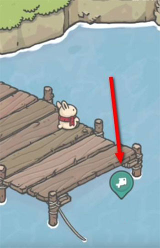 2、接着来到河边的小桥上,点击图标开始钓鱼。
