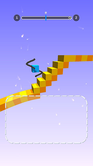 1、清新的卡通画风,新颖的跑酷玩法,花式造腿助力方块前行,过程真是一波三折