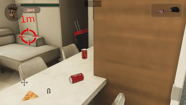 4、点击突出显示的对象进行交互,走近桌子点击桌面上的食物垃圾即可完成垃圾清理。