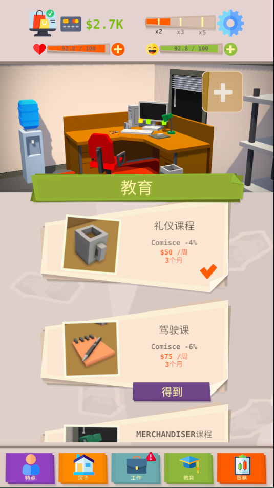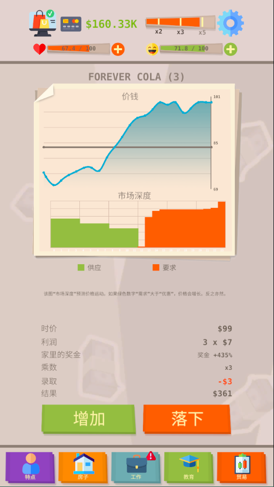 理财系统允许玩家投资股票、房地产或创业项目。经济风险与市场波动将考验玩家判断力,合理分配资产才能实现财富增长与安全并存。