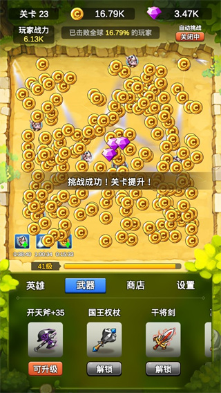 5、想要杀怪快,那么我们可以需要从英雄和武器两方面着手,英雄是指提升英雄的数量,武器可以提升每个英雄造成的伤害能力,这样就可以更高效率的打怪了。