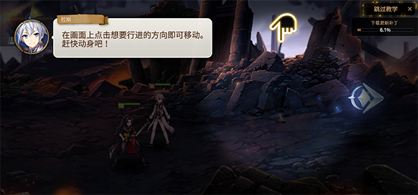 1、进入游戏之后,在画面上点击想要行进的方向,角色就会自动根据手指点击的方向行进