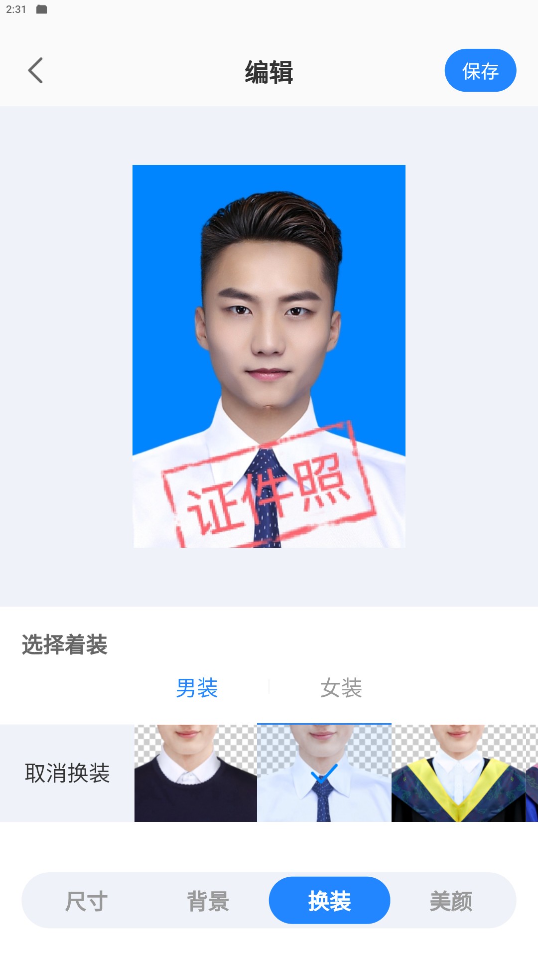 2、【一键保存】可一键将证件照保存在手机里,不怕丢失