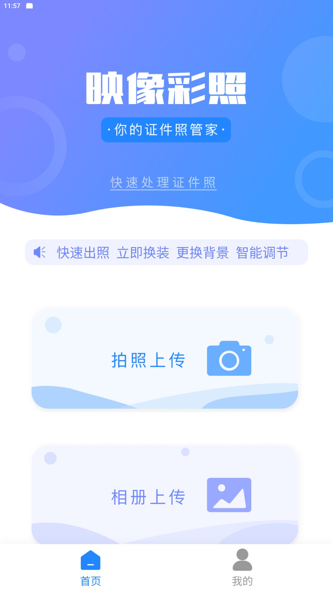 2、点击拍照上传可当场拍摄照片进行处理,相册上传可使用已经拍摄好的照片进行处理。