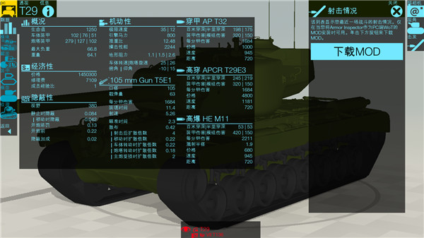 3、玩家可以在游戏内观看坦克的数据。