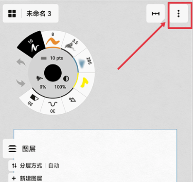 1、用户在使用感压笔画画的时候手指可能会不小心触碰到画板从而触发手指动作,若觉得有影响的话也可以选择关闭,首先点击右上角三点