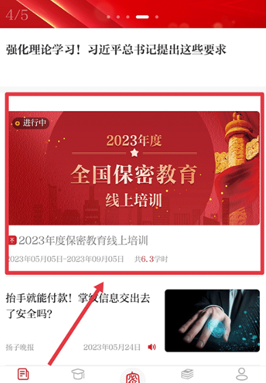 1、打开保密观app,在首页中点击2026年度全国保密教育线上培训界面