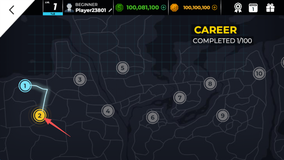 5、点击屏幕右侧的汽车“启动按钮”,随后根据箭头指示前行右转。