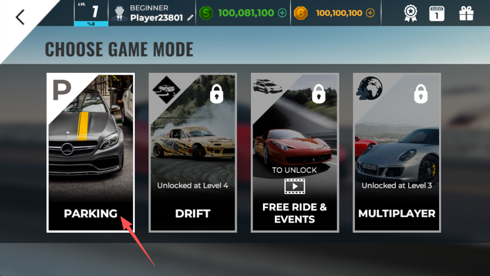 2、选择“停车模式”,也就是屏幕左侧的第一个模式,点击即可。
