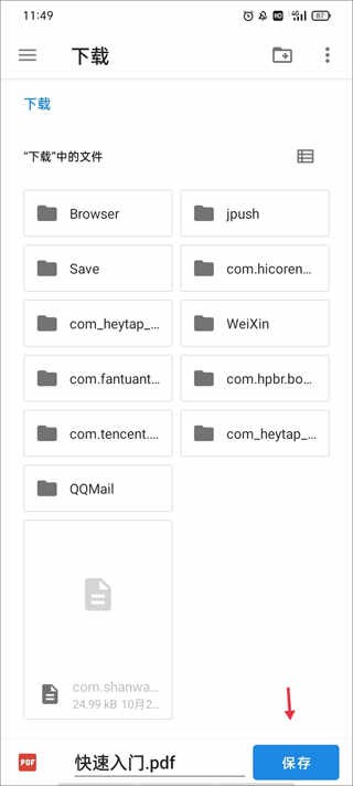 6、给你的文件取一个名称,最后点击右边的保存,就能将文件保存到手机上,这时候就可以将文件带到打印机店打印。