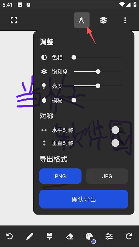 8、调整色相饱和度亮度、水平/垂直对称、PNG/JPG导出格式;