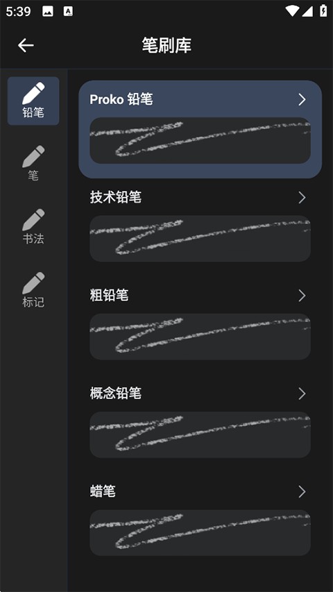 6、笔刷库:涵盖四大类型笔刷及数十种子项笔刷类型;