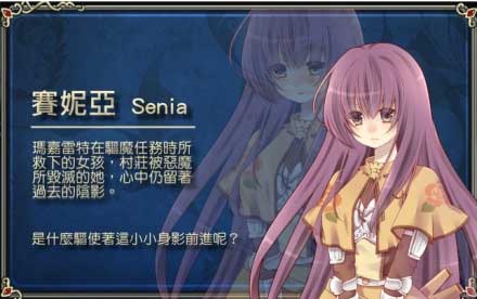 作为一个圣堂的神官,一直独自生活的她在执行任务时,救下了失去双亲的赛妮亚并收留了她,给了赛妮亚温暖及怀抱。不知为何在三天前她失踪了,有人说她前往了永恒之塔。