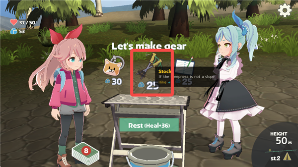 8、玩家还可以在休息站利用收集的石头,来制作装备。