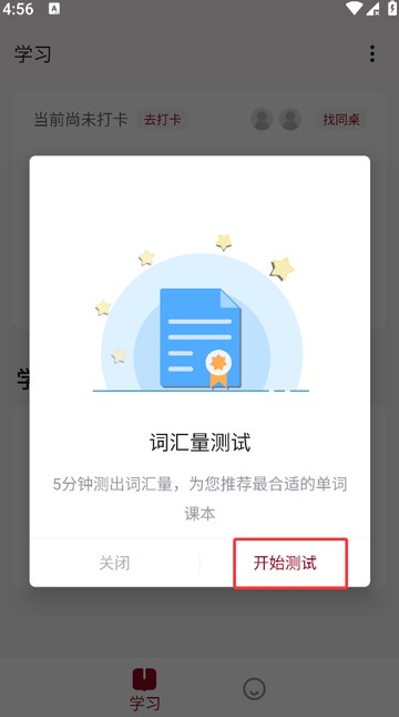 2.如果你是有基础的用户可以点击开始测试来让app推荐课本