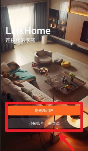 1、打开LinkHome首页,点击“我是新用户”进行注册,或者选择“已有账号,去登录”直接进入主界面。