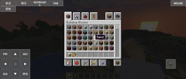 萤幕上的按键操作移植自基岩版,例如右边的按键就是飞行。从萤幕右边往内滑动可开启其他快捷键。