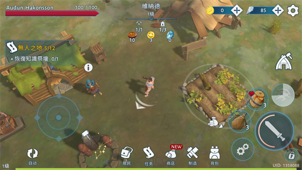 文兰故事游戏中玩家需要砍伐树木、开采矿石和猎杀动物等方式收集资源,维持维京部落的发展。玩家还需要利用物资打造斧头、剑、弓箭等武器,和招募的居民一起与强盗战斗,守护部落的安全。此外,文兰故事游戏还具有如雪林、雪原等多种地形,并且在特定的地点还会触发更有趣的剧情事件!