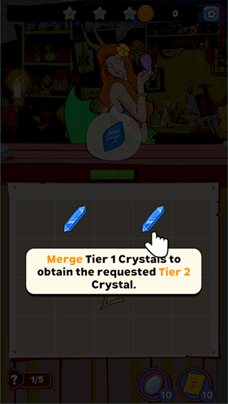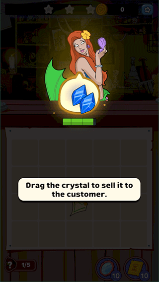 4、将合成的二级水晶拖动卖给顾客,照顾你的客户,尽可能多地赚钱