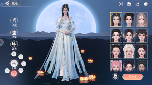 1、进入浮生忆玲珑官方版游戏后,选择自己喜欢的职业,点击前往梳妆就可以开始自己设计人物的发饰、服饰以及适合自己装饰的氛围