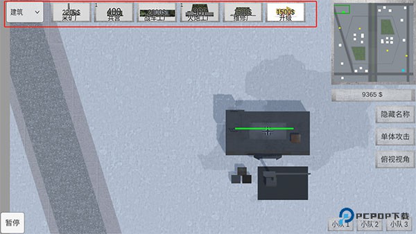 3、战场界面顶部工具栏:点击工厂 / 兵营等建筑图标,将其拖动至空地建造。
