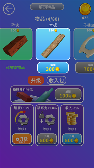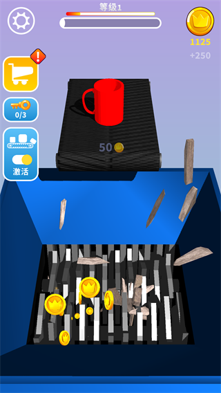 4、不断的清理更多的垃圾来获得丰厚的金币奖励,升级粉碎机的各项功率。