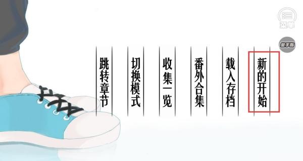 2、新的开始开启新游戏进程载入存档读取之前保存的进度,番外合集查看额外剧情收集一览了解收集物品情况,切换模式改变游戏模式跳转章节快速切换剧情章节。