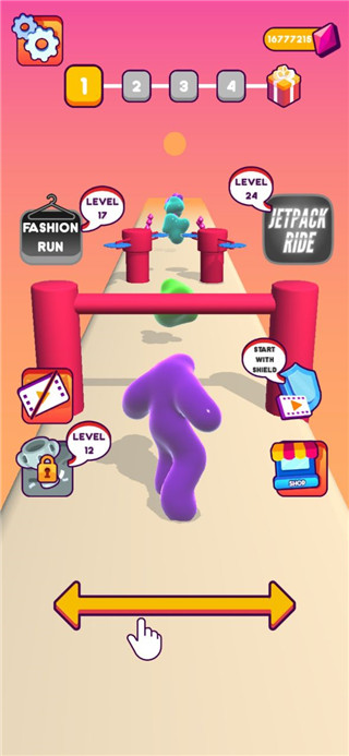 4、玩家在速度的挑战中成为一个软泥一样的特殊英雄,借助自己的身体特性在地图中冲刺挑战起来。