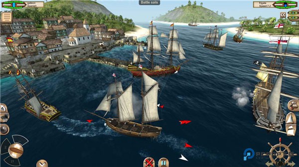 2、海盗战斗还原很真,有炮击、肉搏、风筝战术和陷阱;还能破坏桅杆或扔燃烧桶抢船。