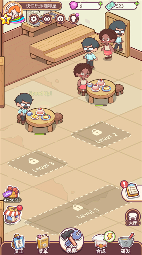 扩展和设计一个顶级咖啡馆!选择地板、墙纸和家具来装饰你的咖啡馆,让它成为镇上的话题!